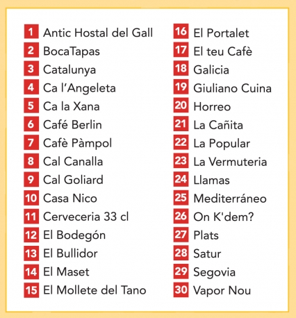Els restauradors que hi participen en aquesta ruta gastronòmica són els següents: