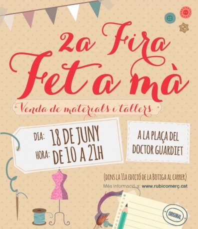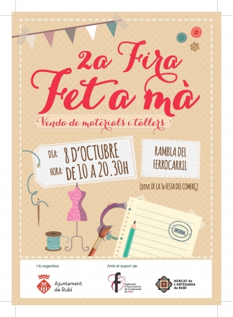 NOTA: Aquesta fira ha quedat ajornada al 8 d'octubre de 2016. El dissabte 8 d'octubre, dins la 3a edició de la Festa del Comerç, se celebrarà la 2a Fira fet a mà de Rubí a la Rambla del Ferrocarril. (…) llegir