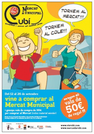 Sortegem quaranta vals de 50,- euros de regal. Vine a comprar al Mercat Municipal del 12 al 22 de setembre i participa en la promoció Tornemal cole Tornem al Mercat !!! i podràs guanyar un val d (…) llegir