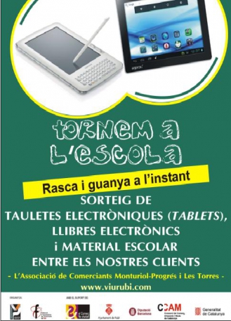 Amb la promoció Tornem a l’escola amb els comerciants de Monturiol-Progrés i Les Torres ofereixen a la clientela poder guanyar llibres electrònics, tauletes electròniques i un important assortit de ma (…) llegir
