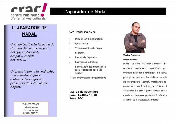 Amb la campanya de Nadal a punt de començar, ens ha semblat pertinent fer-vos arribar aquesta proposta formativa. El curs, previst pel dia 28 de novembre, està organitzat pel Centre Rubinenc d'Alterna (…) llegir