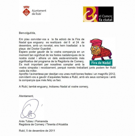 Benvolguda, Benvolgut, Em plau comunicar-te que arran l’acord per al govern de l’Ajuntament de Rubí per al període 2011-2015, signat el passat 29 d’octubre, he assumit, de nou, el càrrec de (…) llegir